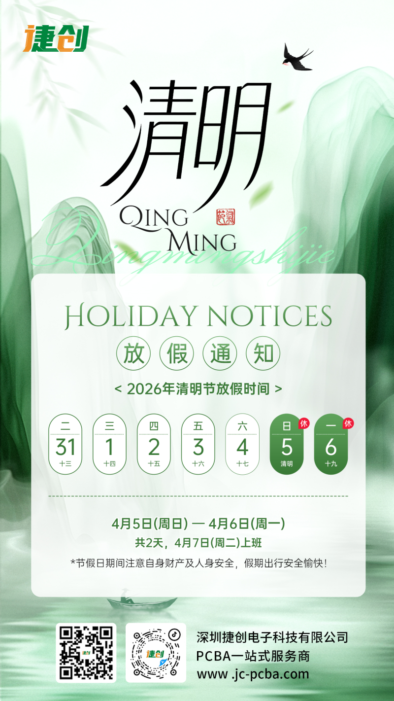 放假期间,客户依然可以通过捷创官网线上系统下单,但订单审核、订单生产等工作需按客户下单的先后顺序依次顺延。请所有新老客户根据公司放假情况提前做好订单安排,我们将竭尽全力保障您的订单按时交付,尽量减少假期对您生产进度的影响,不便之处,敬请理解!
