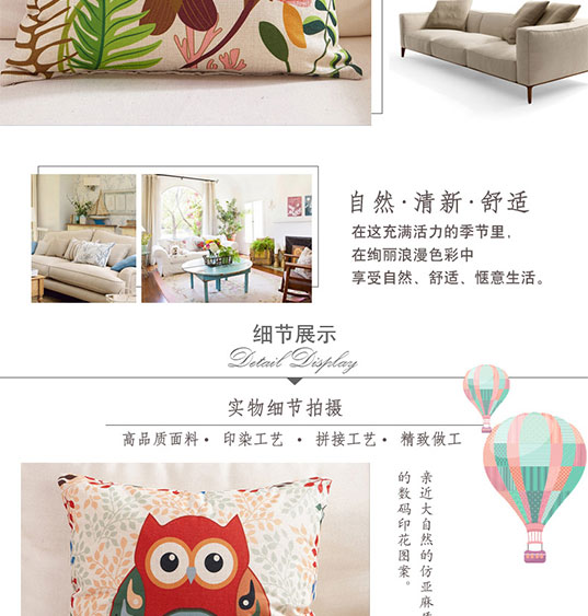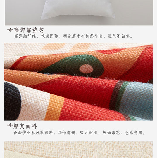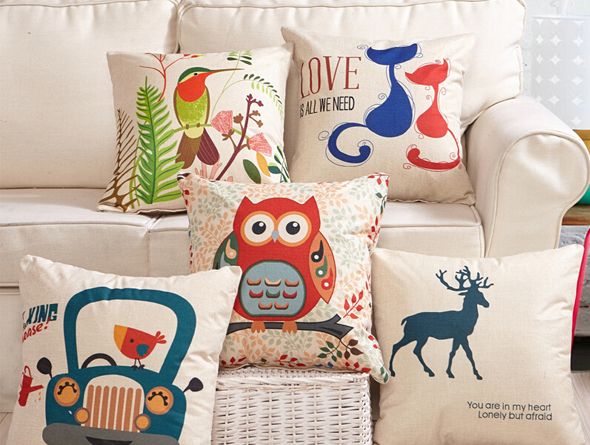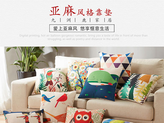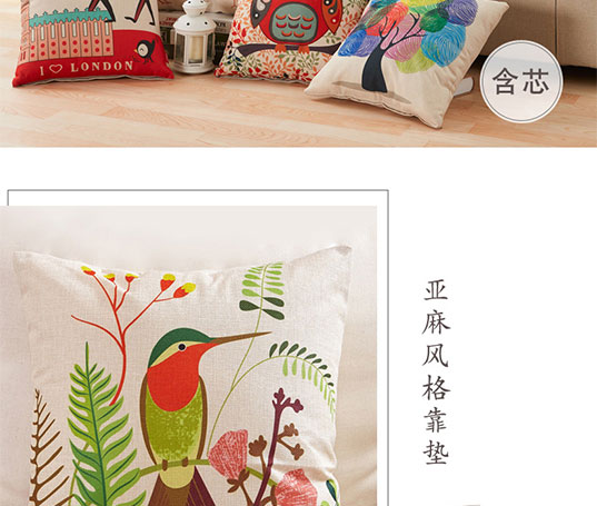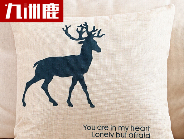 九洲鹿家纺 卡通亚麻风格抱枕沙发靠垫办公室靠枕床头靠背汽车腰靠垫腰枕垫 含芯 率真小鹿 45x45cm